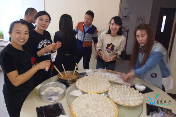 會議結(jié)束后,公司領(lǐng)導和善愛之舟小組成員共同配合準備晚餐,大家情緒高漲,包餃子的樣子各式各樣精美別致,此次活動增強了團隊的團結(jié)協(xié)作能力,同時也增進了彼此間的感情。